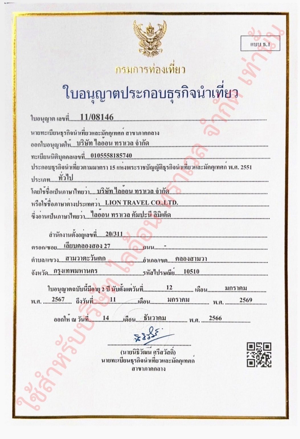 ใบอนุญาตนำเที่ยวเลขที่